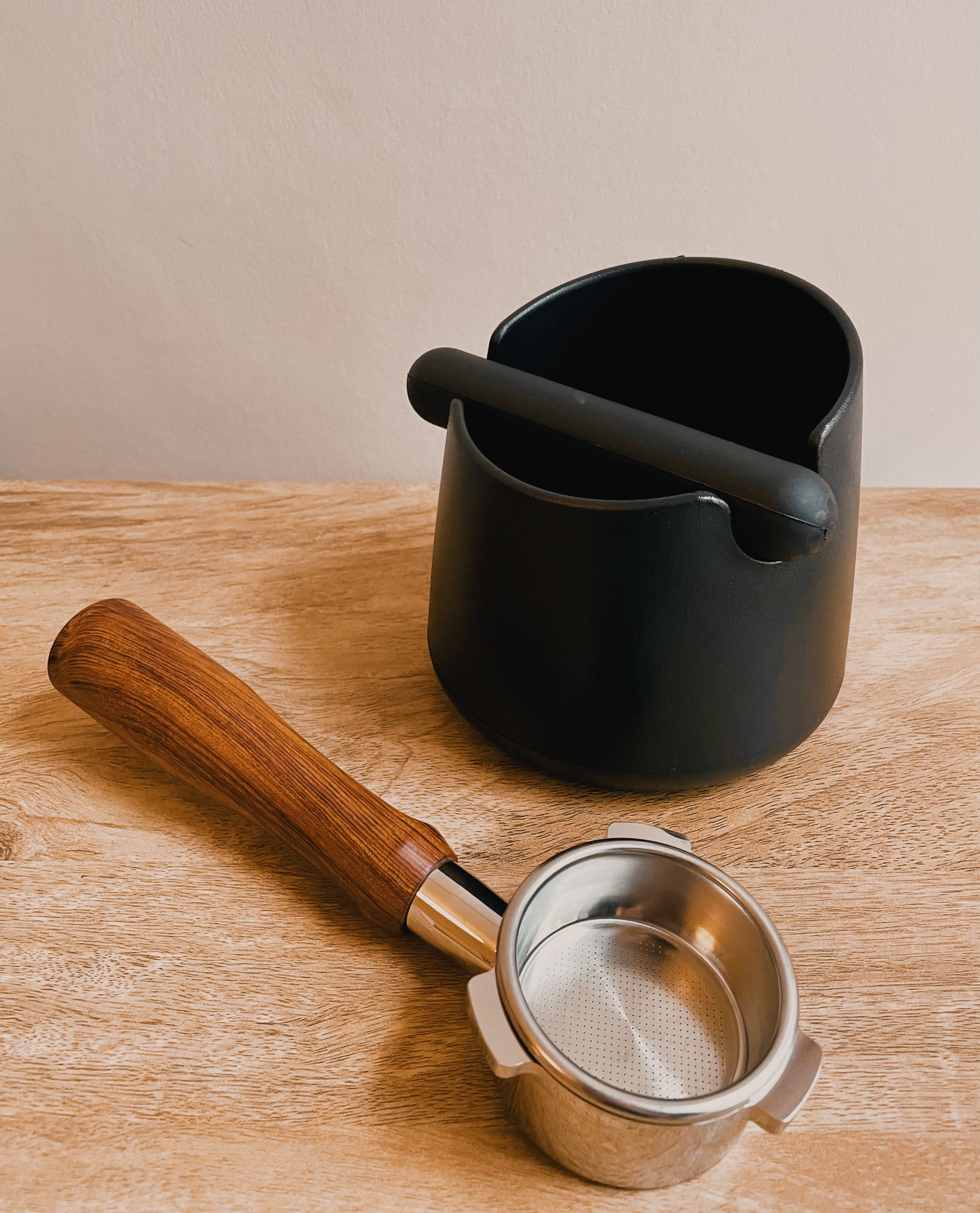 A refined essential for the home barista. This durable container efficiently collects used espresso grounds, maintaining a clean and orderly workspace.
